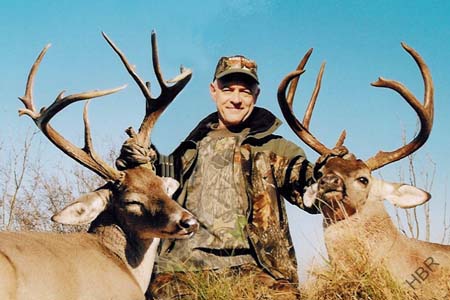 Bill Heavy took these (144 & 130 B&C) last year with one shot, but we just got the photos. He chronicled his hunt in a hilarious story in Field and Stream in April 2005 (click here).
