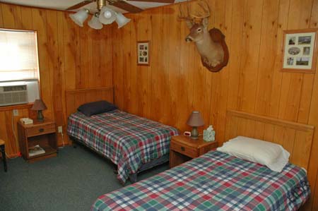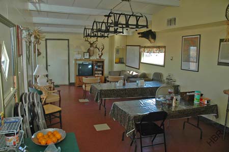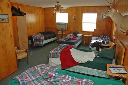we can comfortably sleep fourteen hunters. The two story sleeping