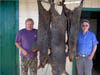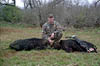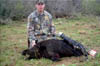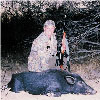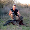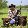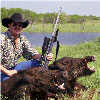 AIM LOWER THAN YOU THINK! That's the way to take a hog. With bow or gun, the answer is the same. It's more crucial with a bow, but don't think that gun hunters don't see their hogs run off too. South Texas feral hog anatomy is different than that of a whitetail deer. Look at some of the harvest photos below then click here for instant insight into where you should aim. Of course there are other ways to catch a fine South Texas hog. Some people, just run right after them. For a story of the wildest hog hunter we know, click here.